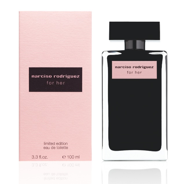 Forme dans la forme, il illustre parfaitement le travail tout en dualité intérieur/extérieur de Narciso Rodriguez. Au lancement, ce flacon était techniquement irréalisable, il fallu attendre deux ans pour que le premier brevet de laquage intérieur d’un flacon soit déposé. For her est donc initialement lancé dans un flacon sérigraphie sur ses quatre faces pour simuler ce cœur noir. En 2005, le flacon devient réalité, un cœur laqué rose pour l’eau de parfum, noir pour l’eau de toilette ; un effet saisissant, inédit qui marque le monde de la parfumerie.